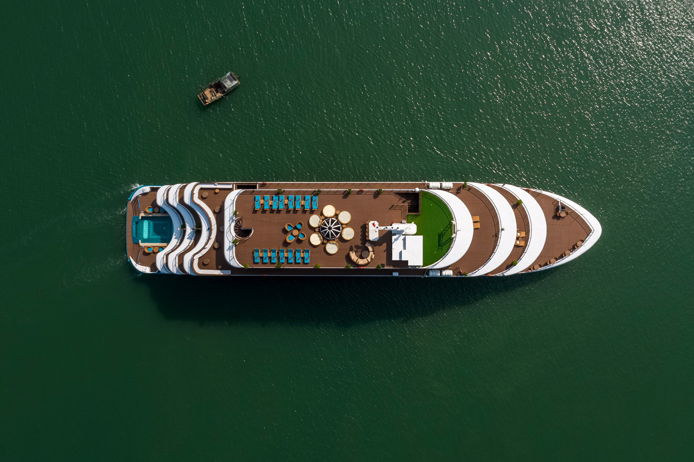 Todas as 30 cabines suíte possuem grandes janelas de vidro e banheiras com vista para o oceano, permitindo aos hóspedes apreciar privadamente a beleza das Baías de Ha Long e Lan Ha. Comprometido com a navegação sustentável, o Capella Cruise garante o ar e a água mais frescos para os hóspedes, ao mesmo tempo que minimiza o desperdício com tecnologia avançada.